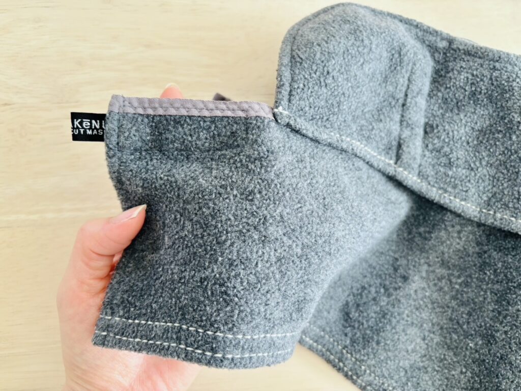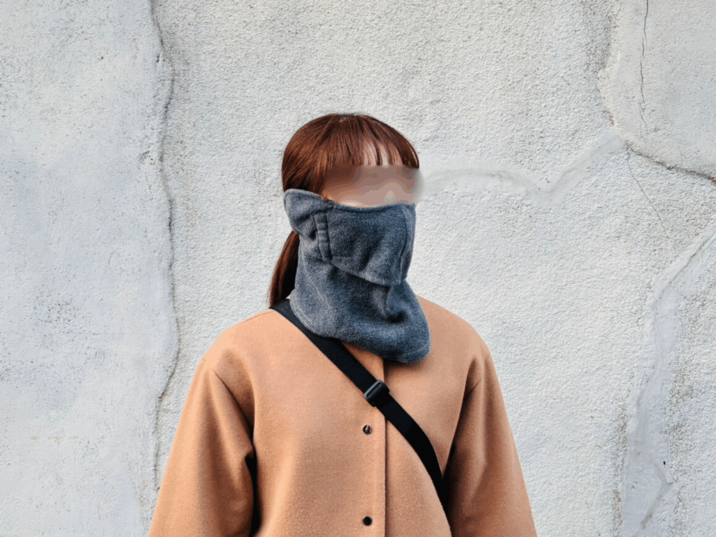 ーー 風が直に口元に当たるわけじゃないし、日常使いなら息のしやすさやこもりにくさを優先したほうが快適だよね! そもそも生地が温かそうだから、寒さも気にならないだろうし。