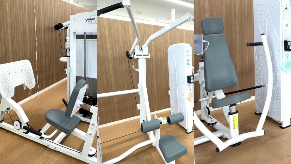 上半身を鍛えるラットプルダウン1台、チェストプレス1台、ショルダープレス1台など。