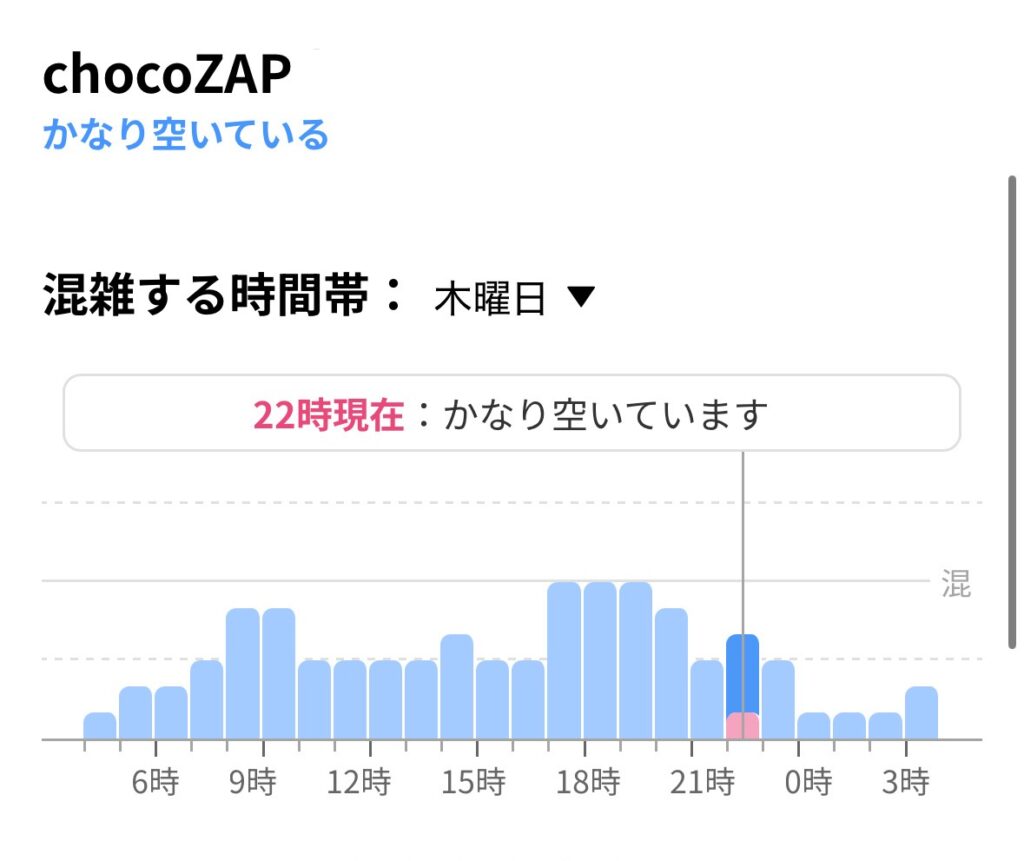 日中通勤している人、朝ジムに行けない人はマシンが全然使えない……なんてこともありそうなのでchocoZAP以外を検討した方がいいかも!!