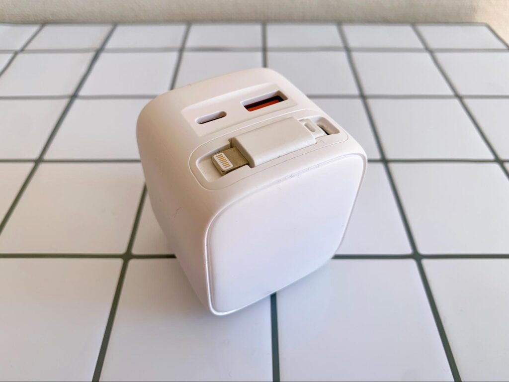 巻取り式で、TYPE-CのシールドとUSB-A・TYPE-Cの2口の充電ポートがついてます。