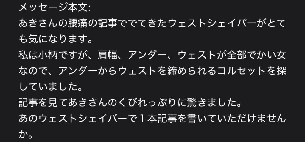 小柄だけど、ウエストやアンダーが大きめだから、アンダーからウエスト部分だけをピンポイントで締められるコルセットを探している。