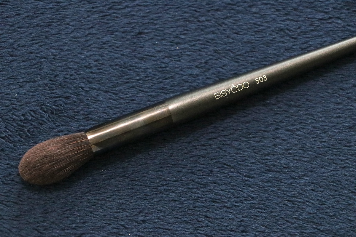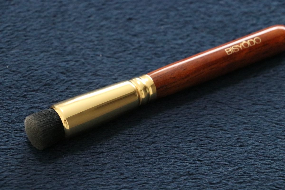 クリームアイシャドウ用のブラシをなぜ選んだかと言いますと、形がいい! この形失敗しねぇぇー!! 「メイクブラシは極論毛質より形(特に素人にとっては)が重要」という持論を持っていて、かつクリームでもパウダーでもどっちにも使えるお得さを兼ね備えていたので、選ばずにはいられなかったのです。昨今はしっとりパウダーシャドウが増えていることもあり、相性バッチリです。粉飛びも少なくどえりゃぁ使いやすいです。ノーズシャドウにもすごくよかったです!