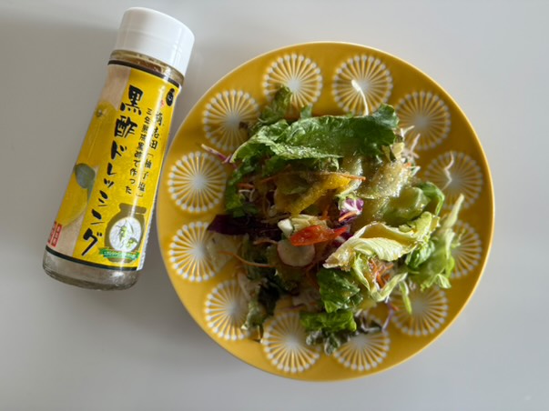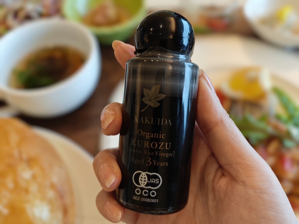 食卓テーブルに置いて追い酢するのに超重宝するんです。家族のご飯と分けて自分のご飯にだけ黒酢を足したい時や、外でマイ調味料を取り出して良い雰囲気のシチュエーションの時は存分にふりかけちゃってください。