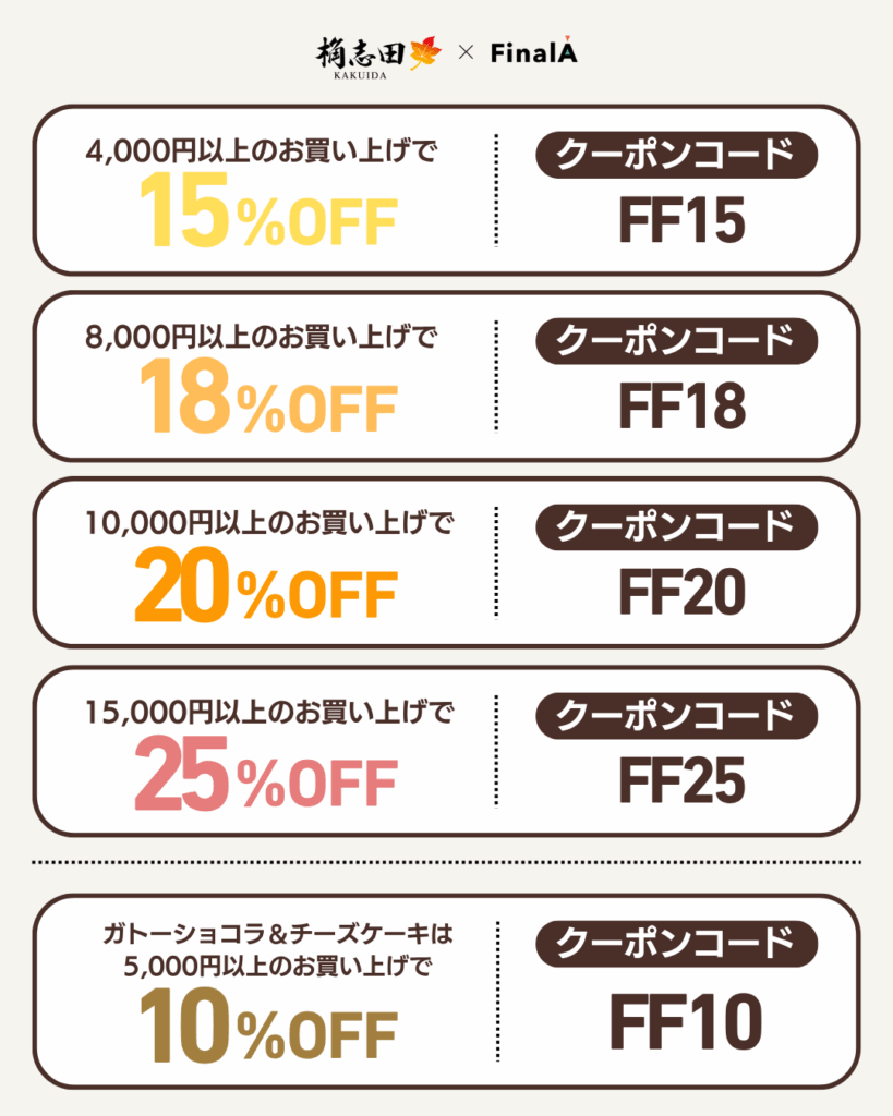 ◾️5,000円以上:10%OFF クーポンコード:FF10