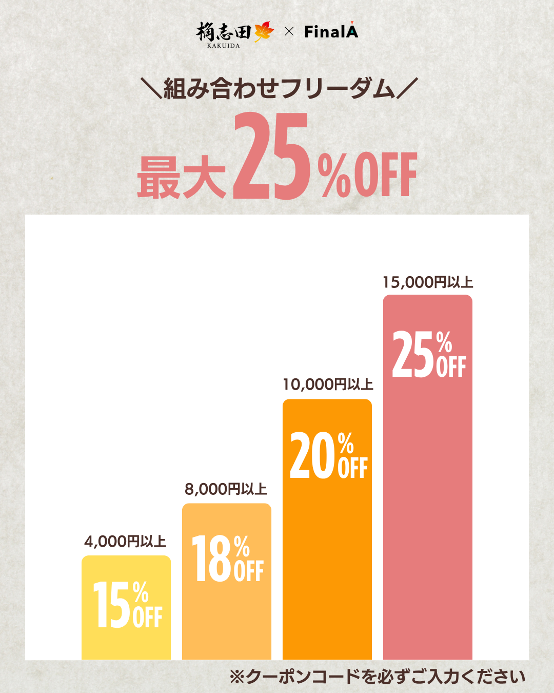 ◾️15,000円以上で25%OFF クーポンコード:FF25