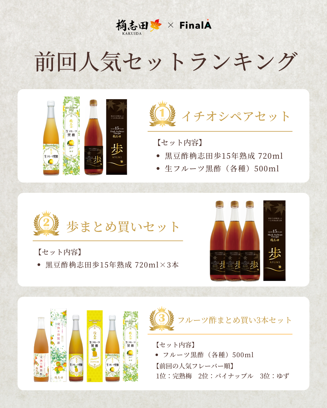 それでもまだ迷う!という方に前回のキャンペーンの人気セットランキングをご紹介します。