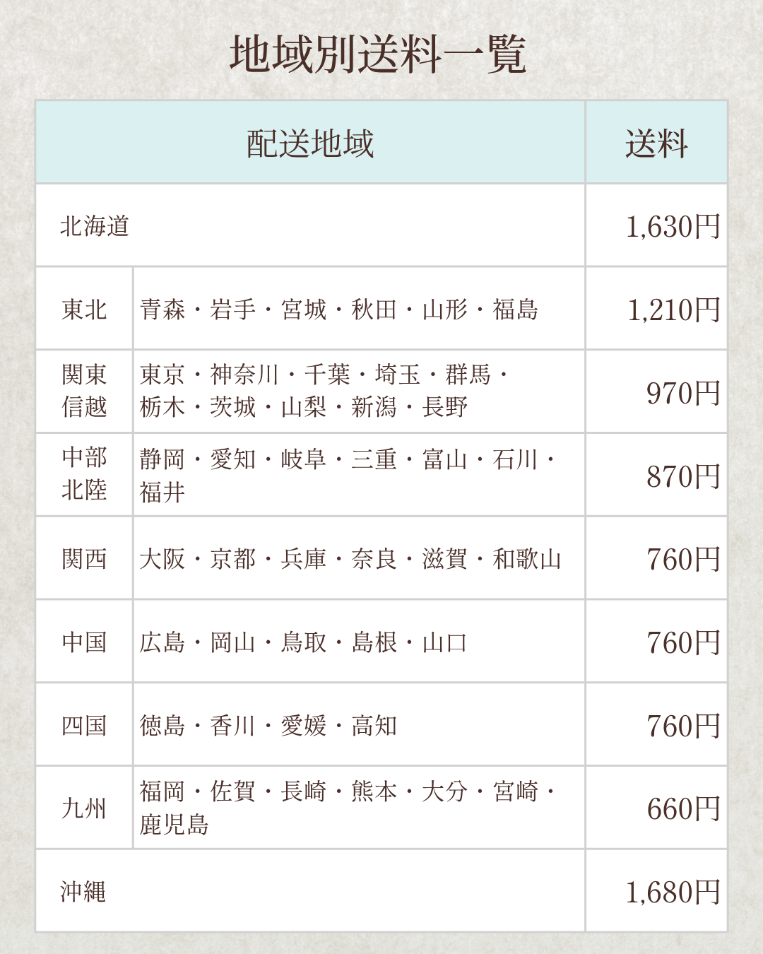 10,000円未満のご注文は、地域別に送料が発生します。