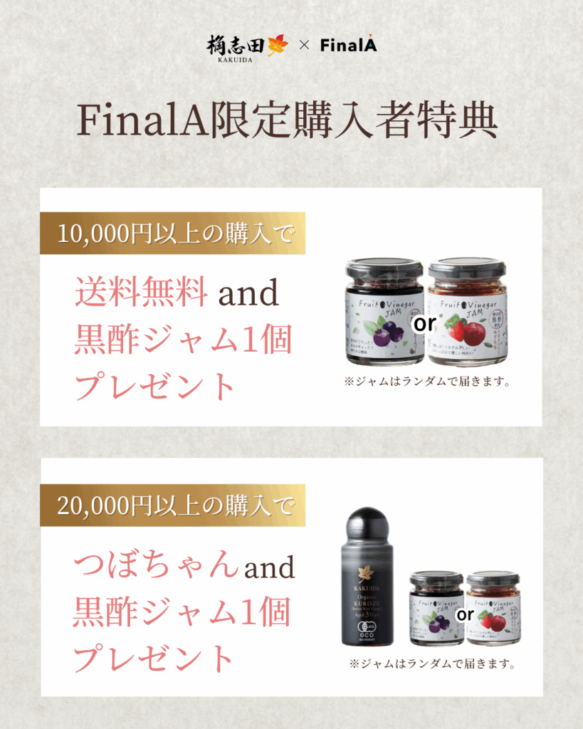◾️10,000円以上の購入で送料無料 and 黒酢ジャム(ブルーベリー or いちごプラム)をプレゼント!