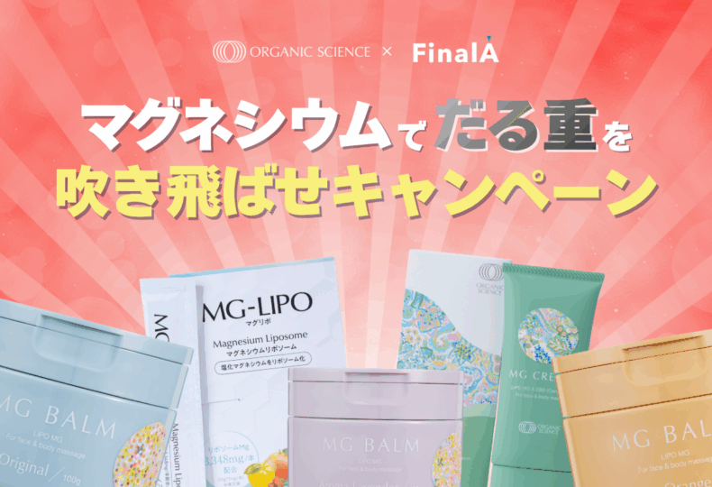 【オーガニックサイエンス✖️FinalA】マグネシウムでだる重を吹っ飛ばせキャンペーン