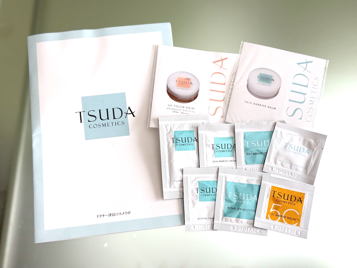 津田コスメで初めてお買い物をされる方には、サンプルセット(全商品一包ずつ)がついてきます!