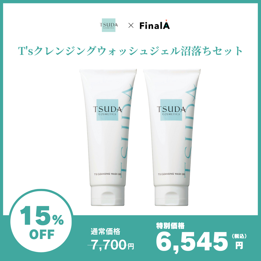 特典:①15%OFF ②プレゼント:T’sクレンジングウォッシュジェルミニサイズ(35g)とめぐり美肌1包